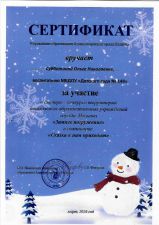 Благодарственное письмо от оргкомитета ДЦ "Эники-Беники" г.Иваново, 2025 за участие в олимпиаде "Я - будущий первоклассник".