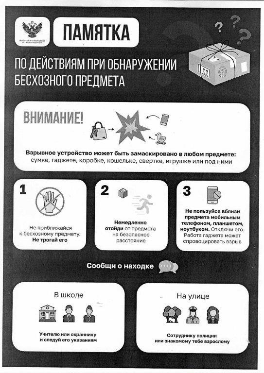 Памятка по действиям при обнаружении бесхозного предмета.